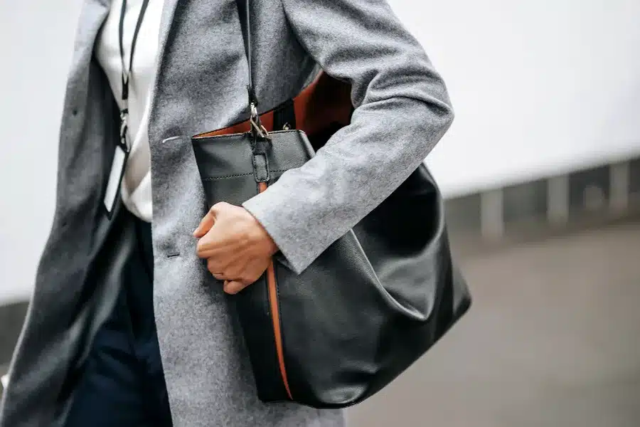 - Структурована сумка-тоут (Structured Tote): Містка сумка прямокутної або трапецієподібної форми з чіткими лініями та короткими ручками (часто є і довгий ремінець). Ідеальна для роботи та повсякденного використання. Шукайте моделі з якісної шкіри, що добре тримає форму (наприклад, Saffiano або гладка теляча шкіра), в нейтральних кольорах (чорний, коричневий, бежевий, сірий, темно-синій). Іконічні приклади: Saint Laurent Sac de Jour, Prada Galleria, Hermès Birkin (хоча це вже супер-люкс).