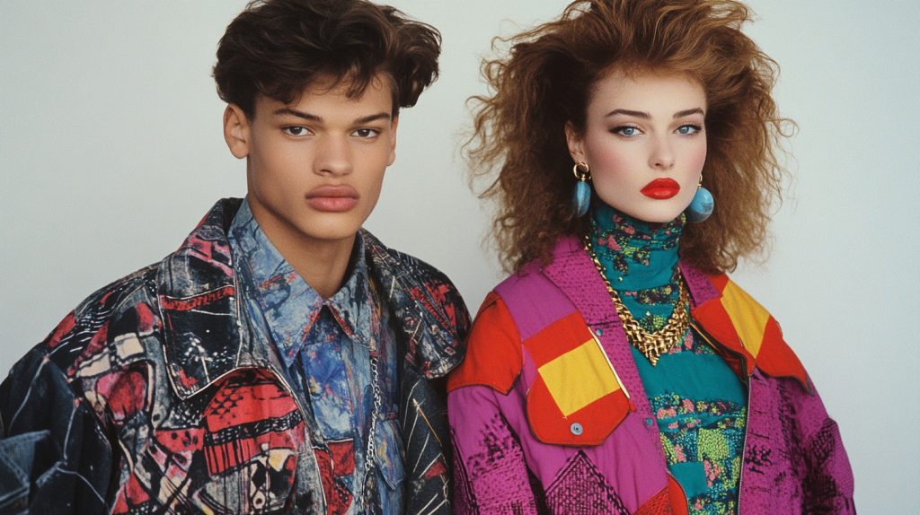 Символом епохи став Power Dressing — діловий костюм із гіпертрофовано широкими плечима. Величезні підплічники створювали маскулінний, владний силует, додаючи жінці впевненості у світі бізнесу. Паралельно з цим виник культ ідеального тіла. Джейн Фонда з екранів телевізорів закликала всіх займатися аеробікою. У моду увійшли яскраві легінси, боді, гетри та неонові, кислотні кольори. І, звісно, іконою була Мадонна. Її корсети, одягнені поверх одягу, мереживні рукавички, масивна біжутерія та сміливий макіяж копіювали мільйони дівчат по всьому світу.
