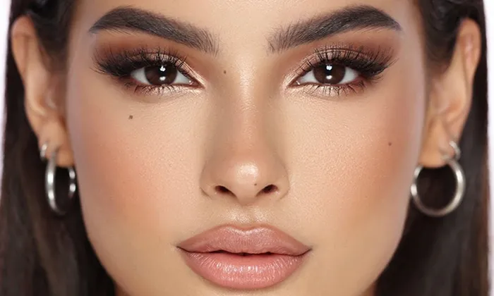 Чтобы взгляд «открылся» и не выглядел уставшим, добавь немного магии. Возьми самый светлый сияющий оттенок (шампань, перламутр) и аккуратно нанеси его пальчиком или маленькой кисточкой во внутренний уголок глаза. Также можно добавить капельку хайлайтера под бровь — это визуально «приподнимет» ее.