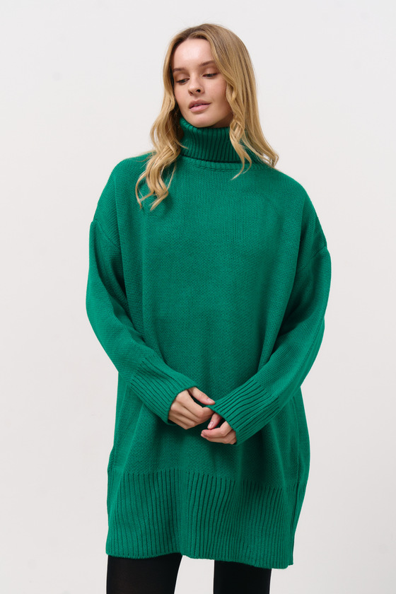 - Сукня: Об’ємна, довга (міді/максі) в’язана сукня з вовни мериноса.